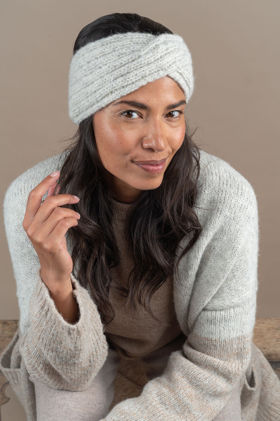 Deze hoofdband is ideaal voor een frisse herfst of winter wandeling of fietstocht. Deze is windproof dankzij een hele fijne fleece binnenin. Baby alpaca. Met de hand gebreid. One size.